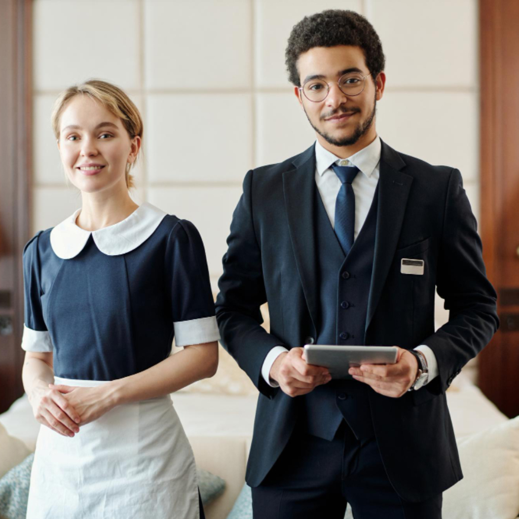 该行业致力于为旅客提供高水平的满意度,通过酒店、度假村、俱乐部、餐厅、邮轮、零售、服务套房、汽车旅馆、客栈、床和早餐以及家庭住宿等形式,这些设施在规模、功能和成本上各不相同。传统上,酒店业的角色包括游客服务、销售、餐饮、旅游运营商、前台和家政。较大的机构可能采用复杂的管理结构,包括担任最高执行官的总经理、负责各部门的部门主管、中层经理、行政人员和一线监督员。工作职责和任务多种多样。